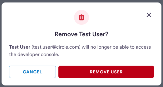 Confirm that you want to remove this user by selecting Remove user. This action will disable the user information and permissions in the developer console.