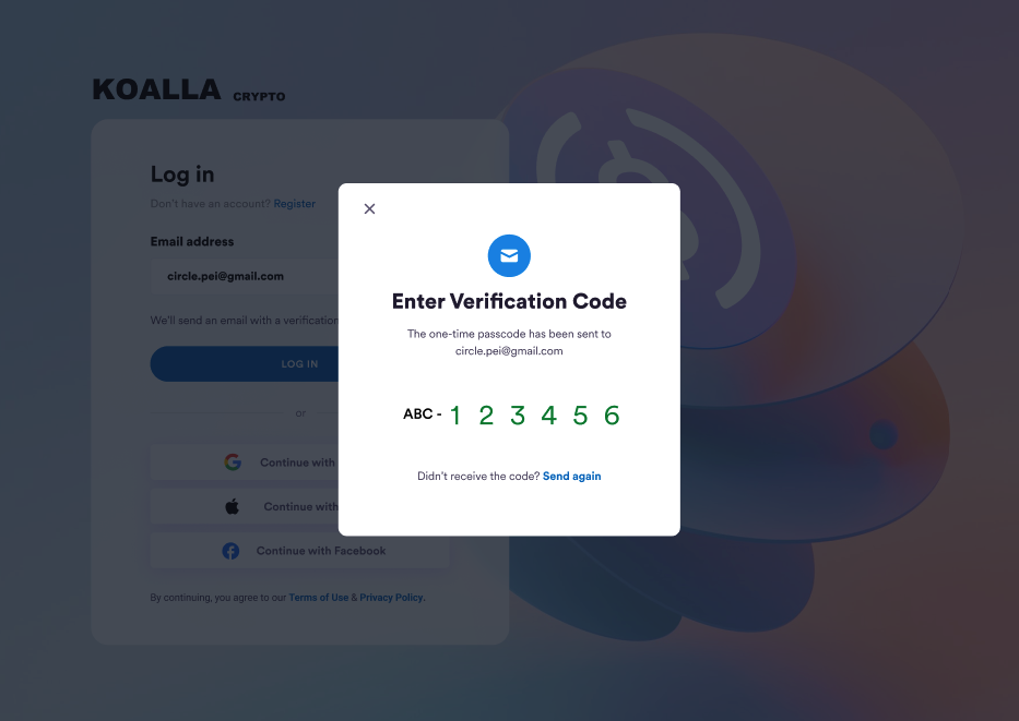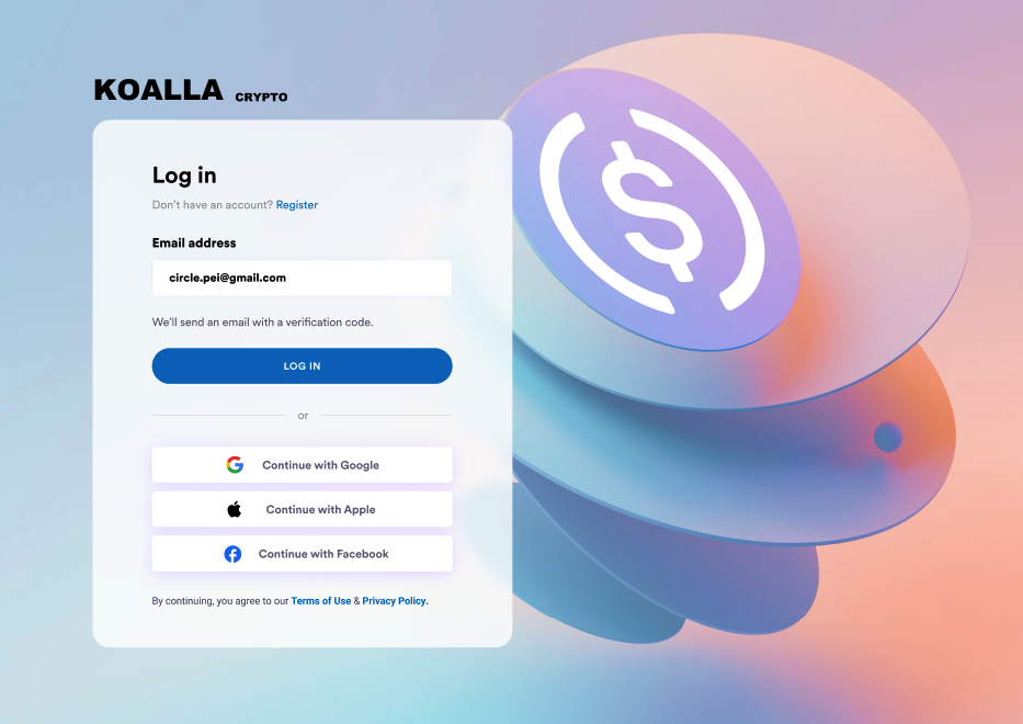 | Prompts users to sign up with their email address and sends them an email containing an OTP to verify their identity. | Circle displays predefined confirmation UIs to allow users to preview and confirm transaction or signature details with one click. You can customize these UIs for on-chain actions relevant to your scenarios. You can also disable confirmation UIs if you want to fully customize the signing UX. | Circle implements a series of cryptographic procedures that protects key shares and stores a part of key shares on the user’s device (secure enclave). This ensures that the private key is invoked only when the user performs a transaction request, contract execution, or signature signing from their own device. | |