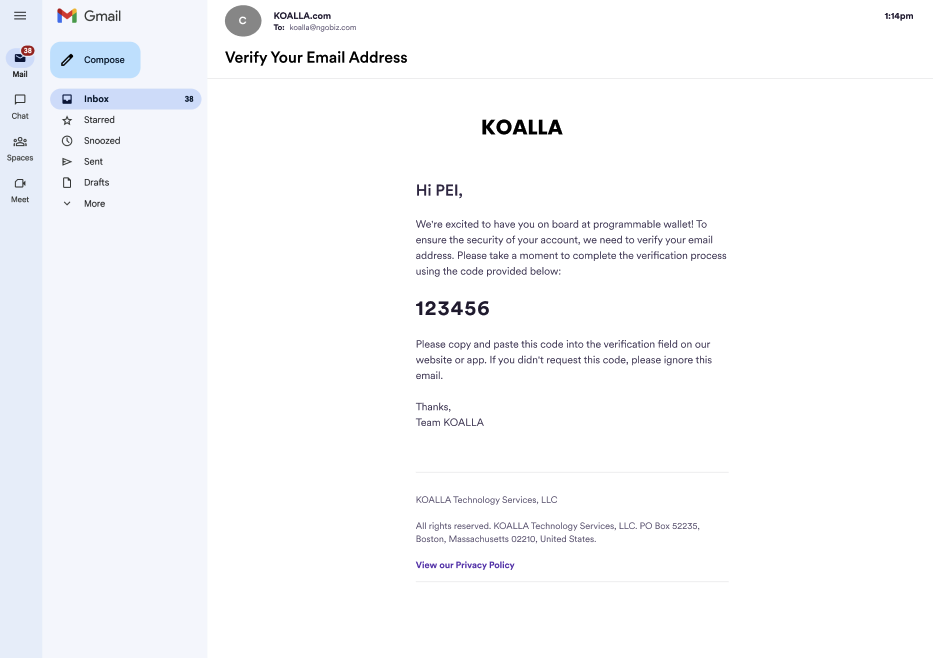 in the message. If not, users receiving the email will not receive the OTP.User onboarding and wallet creation process