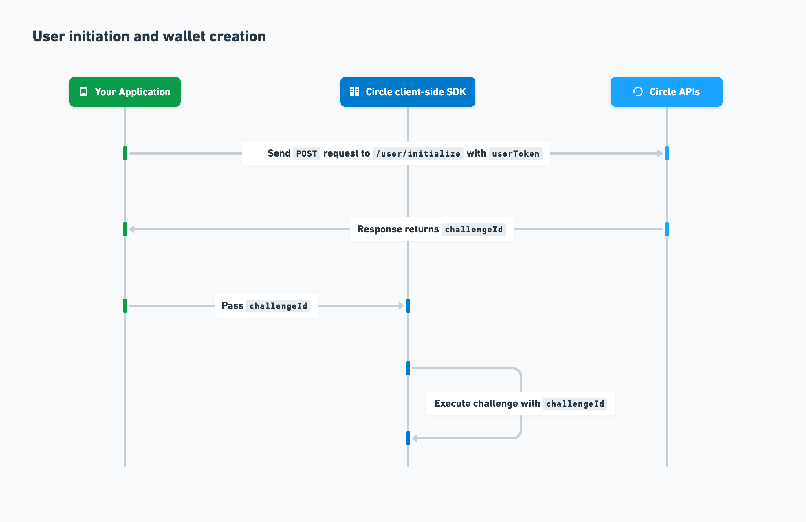 After you’ve onboarded your user, you can initialize the user and create a wallet. The process is as follows:- To initialize the user, you send a
