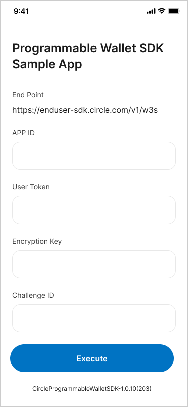 At this point, you should be ready to execute your first request through the sample app. Once you’ve entered the required fields indicated in Step 4, click Execute to continue. The sample application takes you through the end user initialization process, which includes setting up the user’s PIN code and security questions and having the user confirm their configuration.