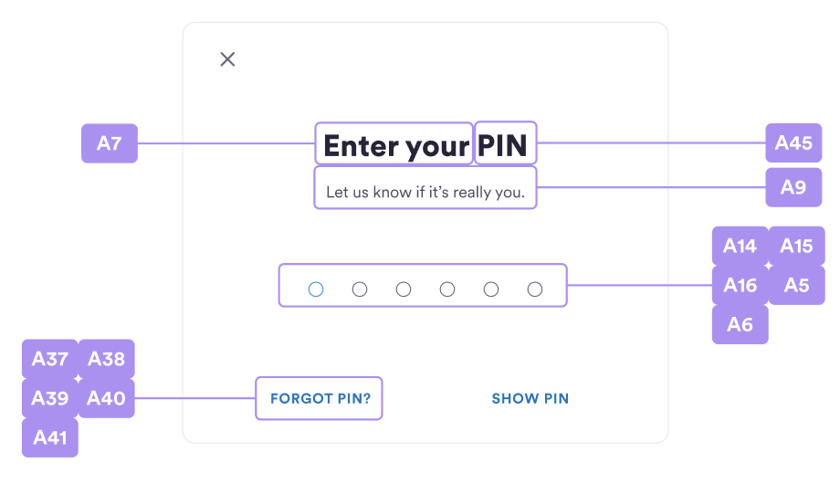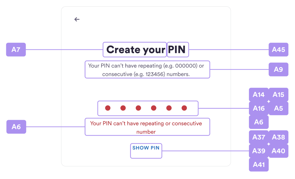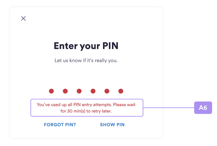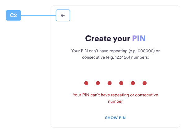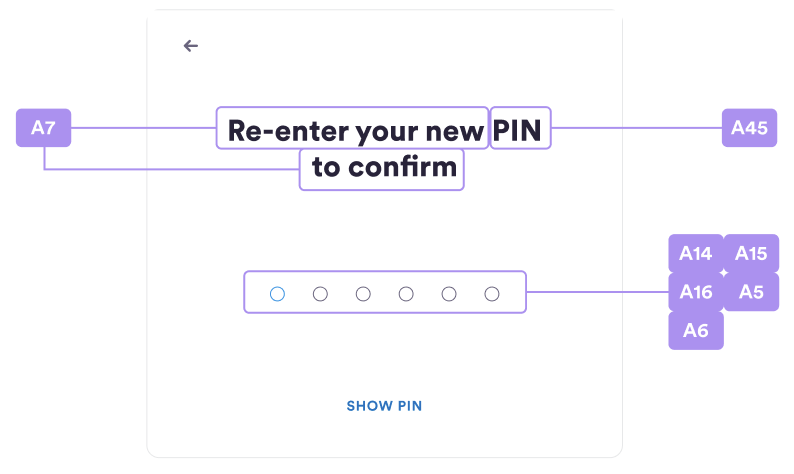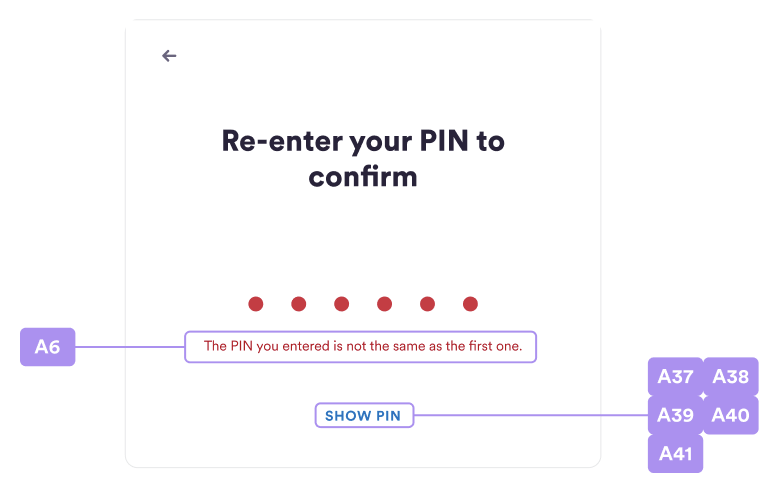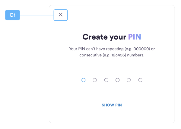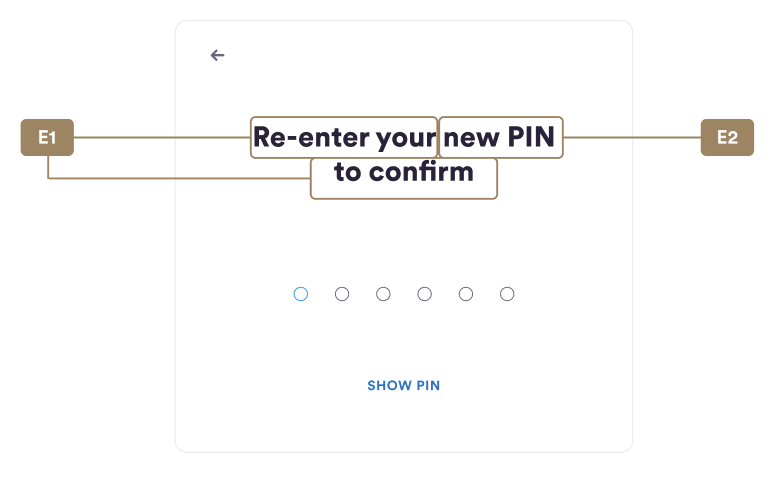 | E1 | headline | Headline text Keep the placeholder like this: E.g. `Re-enter your {{pin}} to confirm` |