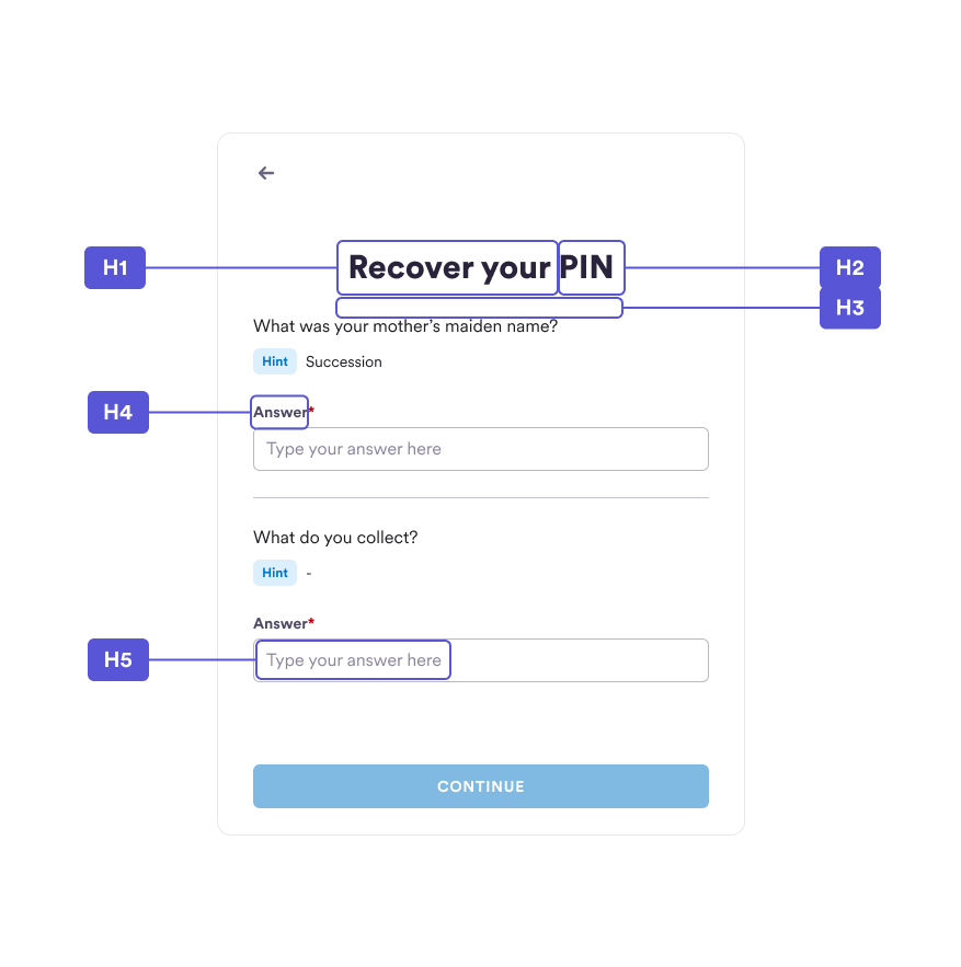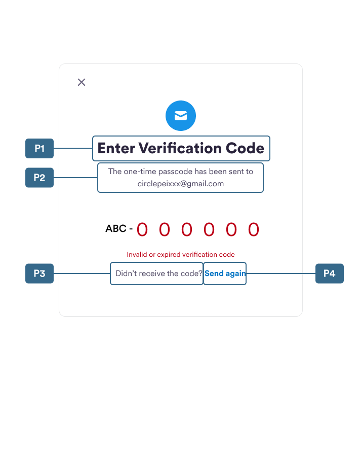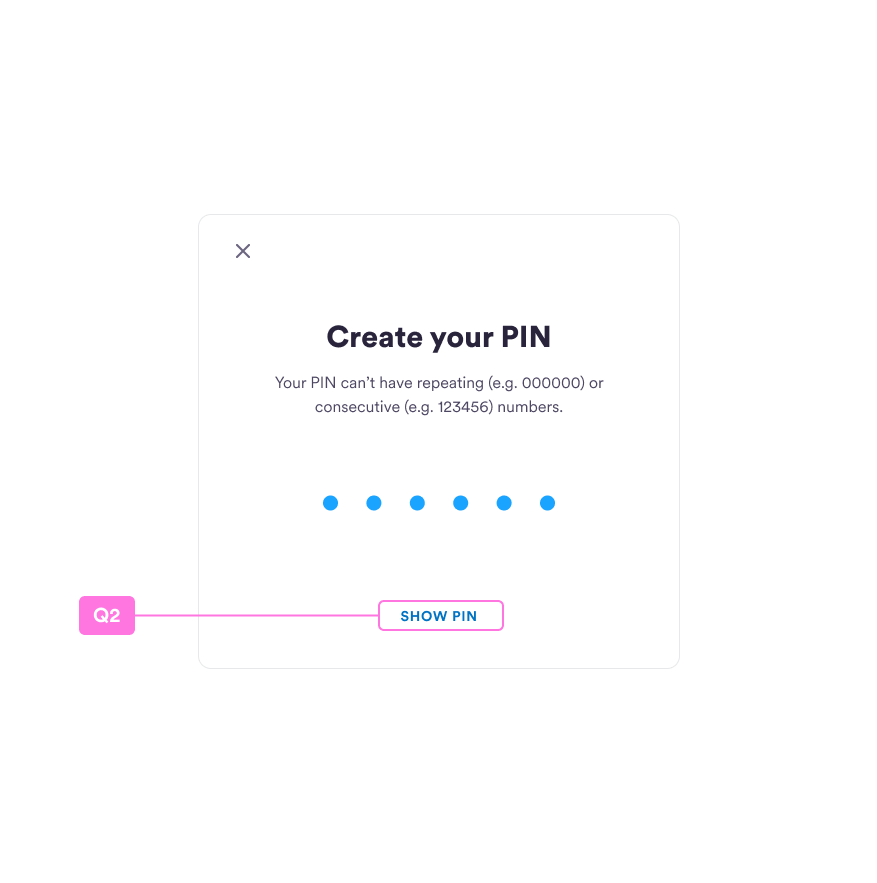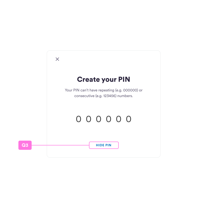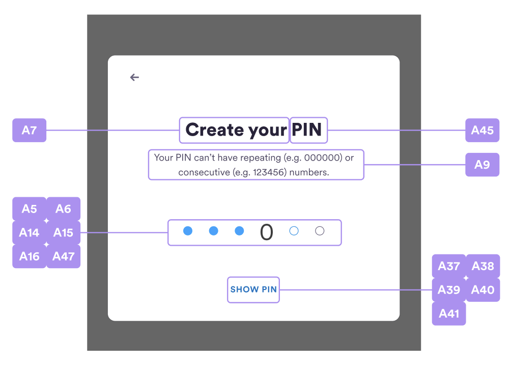 | E1 | headline | Headline text Keep the placeholder like this: E.g. `Re-enter your {{pin}} to confirm` |