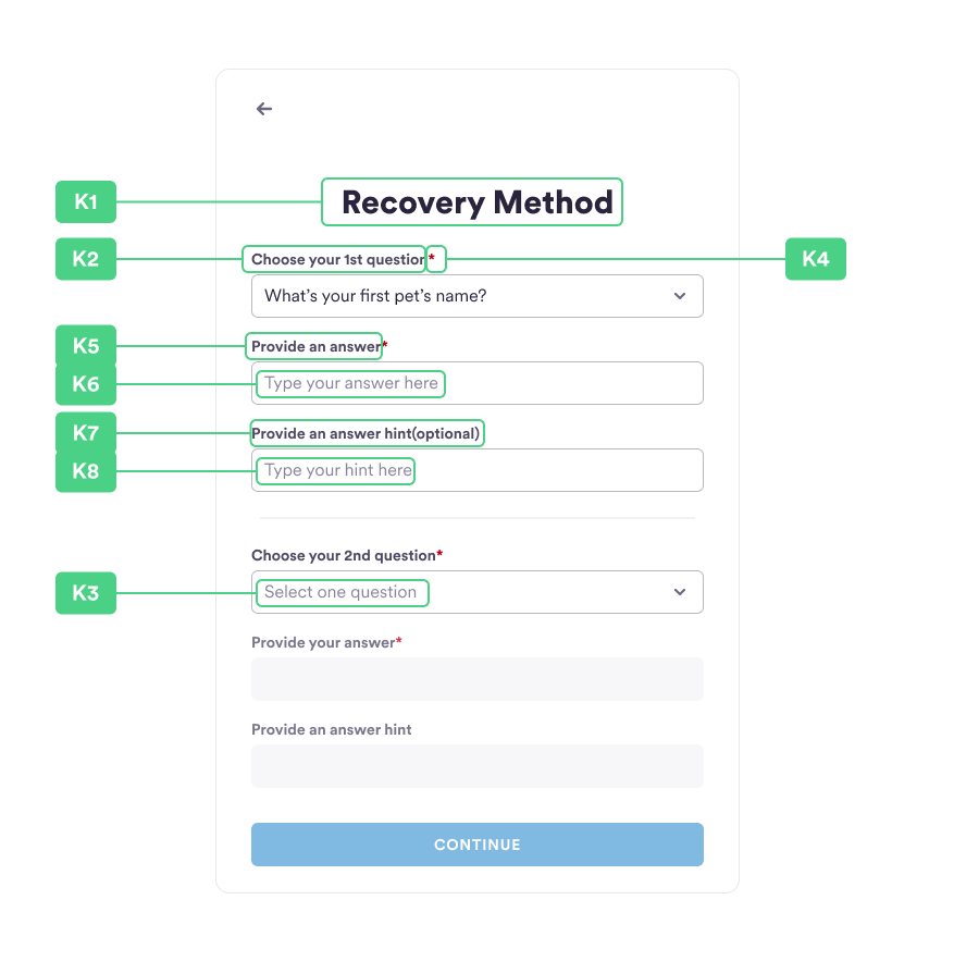 | K1~K8 | securityQuestions | Holds localization settings for SecurityQuestions screen. |
