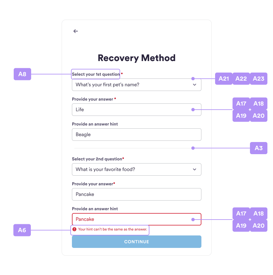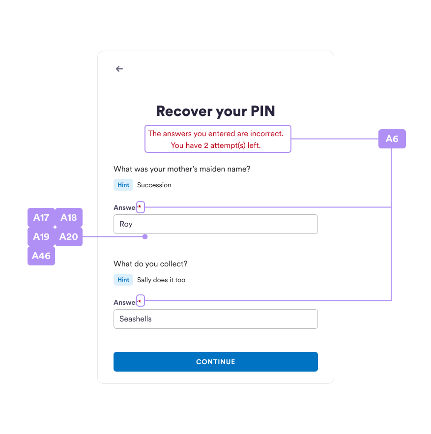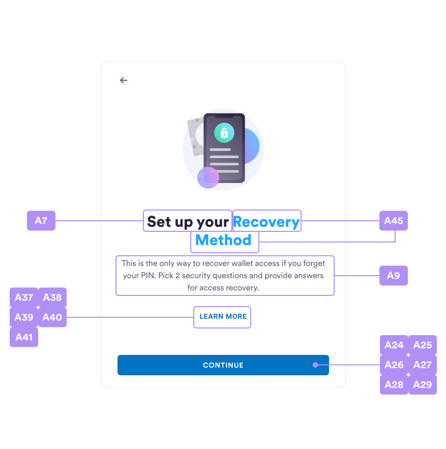 | A42 | recoverPinHintTitle | Text color for recover pincode hint title, e.g. ‘#FFFFFF’ or ‘white’. |